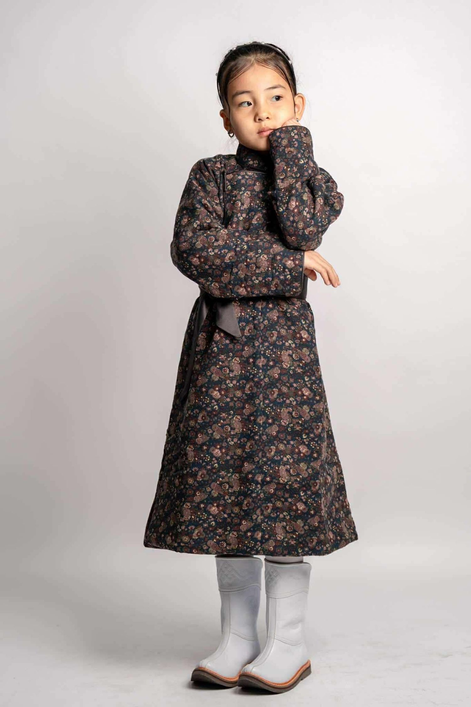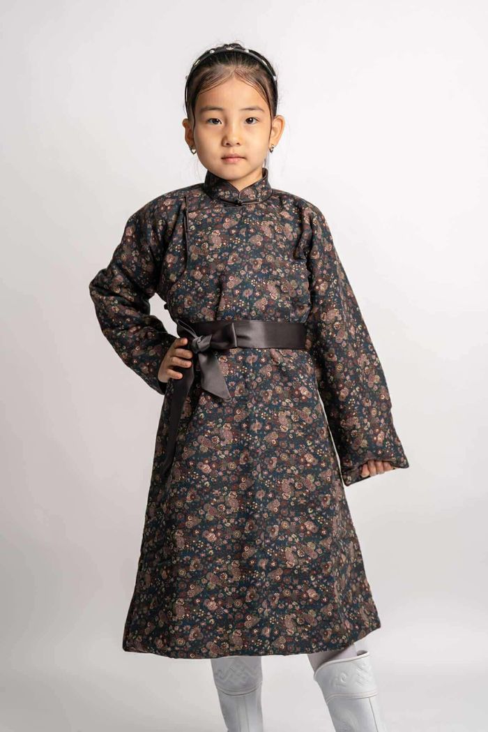 Цэцгэн хээтэй хар бор хөвөнтэй дээл