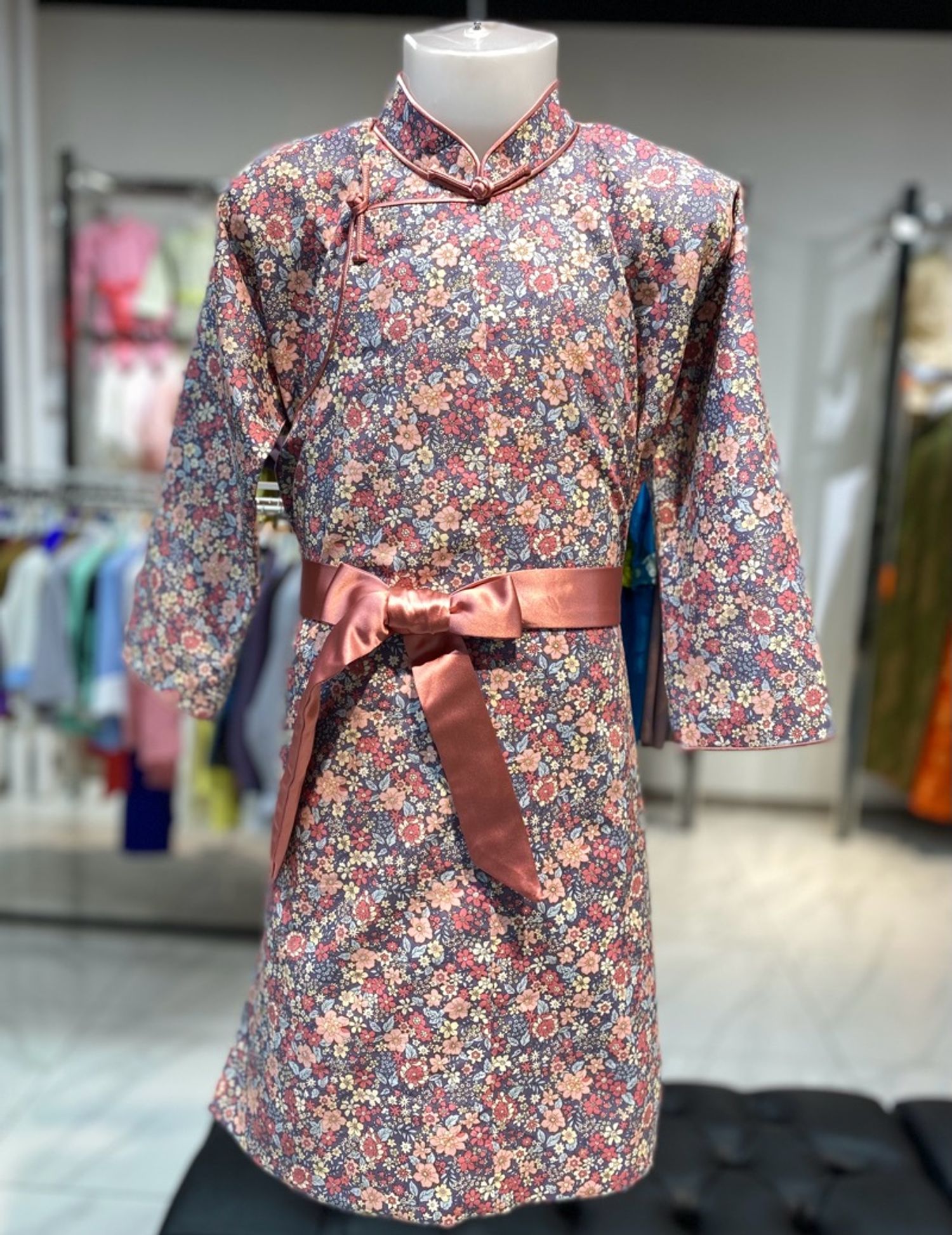 Цэцгэн хээтэй саарал дээл